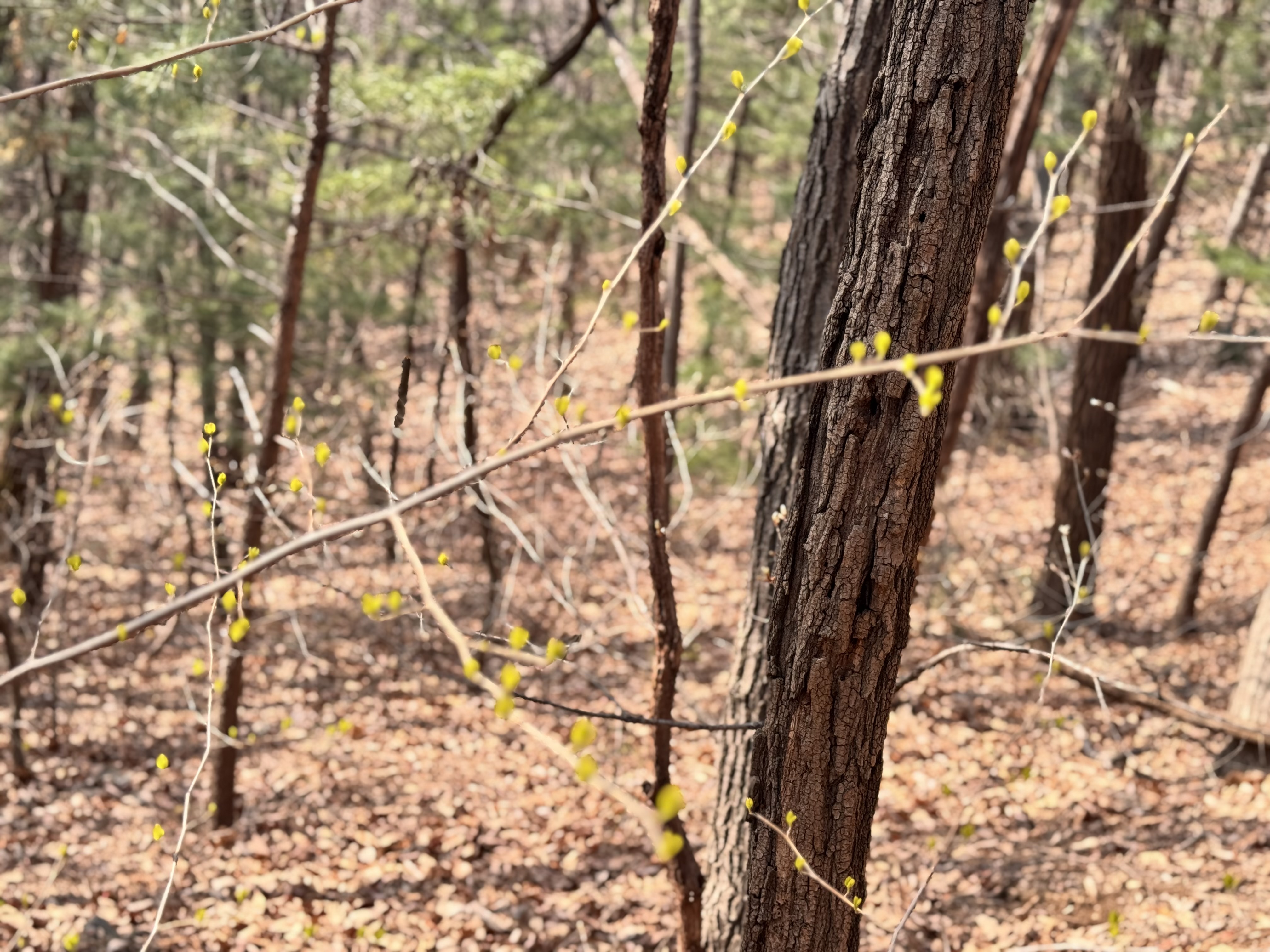 개나리와 진달래가 드디어 인사하기 시작했다. 이 날은 4월 5일이라 개나리가 이제 막 피어나기 시작한 때다.